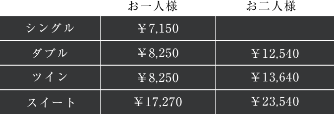 料金表は全て消費税を含んでおります。・チェックイン 15:00